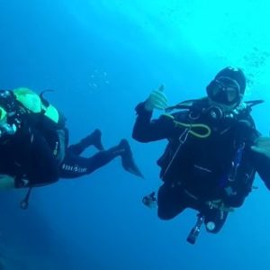 El acceso al mar es por una escalera y su poca profundidad (17 metros máximo) hace que se ideal para principiantes.