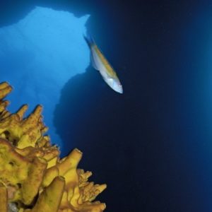 La primera, recorre el perfil derecho del acantilado, llegando a los 16 metros de profundidad. Bancos de roncadores, besuguitos, sardinas, barracudas,….